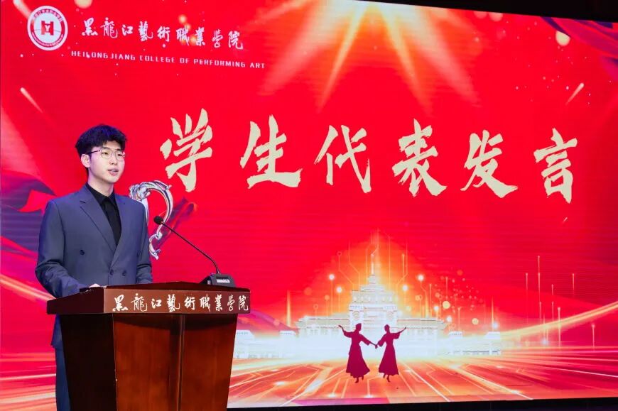 会上,党委副书记隋晓晨宣读《关于表彰2024-2025年度优秀集体、优秀教师、优秀教育工作者的决定》和《关于表彰2024-2025年度获得国家和省级标志性成果及部分重要奖项的决定》。学院领导班子成员为获奖人员颁奖。 副院长黄卫青为优秀教师颁奖 纪委书记侯敬波为优秀集体、优秀教育工作者颁奖 副院长张宇为获奖团队和个人颁奖 党委书记杜伟、院长陈宇为获奖团队和个人颁奖 教师是学院教育事业的宝贵财富,他们用实际行动诠释着“学高为师、身正为范”的深刻内涵。思政部教师高玉霜代表全院教师发言。 教师代表高玉霜发言 学生代表王世继发言 教师的辛勤付出,学生们看在眼里、记在心里。在这个特殊的节日里,我们的学生也有许多心里话想对老师们说。传媒系学生王世继代表全院学生做出了真挚的发言。一句句感恩的话语,饱含着学生对老师的尊敬与爱戴,这既是对广大教师工作的肯定,更是对我们未来工作的鞭策。 党委副书记、院长陈宇总结讲话 陈宇代表学院党委向全校教职员工致以节日问候,向获得表彰的先进集体和优秀教师表示热烈的祝贺,对在各自岗位上默默奉献的全体教职员工表示衷心的感谢。 陈宇指出,回望过去一学年,学院坚持贯彻习近平总书记关于教育的重要论述,深入贯彻党的二十大关于加快建设教育强国的战略部署,以实际行动更好地服务国家战略、融入区域发展、彰显艺术特色、提升育人质量、推进“双高”建设。学院成功入选黑龙江省第三轮高水平高职学校和高水平专业群建设项目,圆满承办2025年世界职业院校技能大赛表演艺术赛道(高职组)赛事;一批批优秀学子在国家级、省市级艺术赛事中崭露锋芒、屡获佳绩;招生和在校生人数均实现历史突破。 陈宇强调,学院将以“双高”建设为战略引领,持续深化教育教学改革。一是心怀“国之大者”,锚定艺术教育的时代方向。将“为党育人、为国育才”的使命融入教学点滴,在专业课程中挖掘中华优秀传统文化的艺术内核,引导学生用艺术语言讲好中国故事、龙江故事。二是加强专业素养,打造高质量课堂。始终保持“本领恐慌”的清醒,以更高的标准要求自身,主动对标行业前沿,不断打磨专业技艺。三是汲取榜样力量,涵养高尚师者风范。不断提高理论素养、坚定理想信念、涵养高尚情操,坚持“四有好老师”标准,自觉弘扬践行教育家精神,以高尚的道德情操和精湛的技艺为学生树立标杆,做新时代立德树人的“大先生”。 此次教师节表彰大会,不仅让全体教职工感受到了职业的荣誉感与幸福感,更凝聚了全校上下团结奋进的力量。会后,教师们深受鼓舞,纷纷表示要见贤思齐,在各自岗位上躬耕不辍、精益求精,以更加昂扬的斗志,共同谱写学校高质量发展的新篇章。党委副书记隋晓晨主持大会