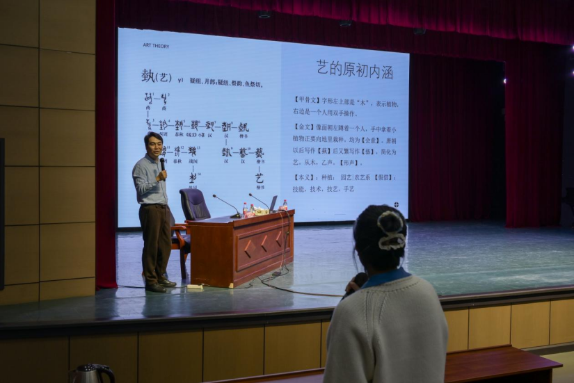 进入第二部分“艺术是什么——从‘何为’到‘为何’”,王青亦老师将话题引向更深层的艺术本质探究。他提出,艺术的核心在于表达与传递——或是情感的共鸣,或是思想的启迪,或是对世界的独特洞察。当创作从“模仿客观”转向“抒发主观”,艺术才真正拥有了灵魂。这一部分的分享,让在场师生对“艺术为何存在”有了更具哲学性的思考。