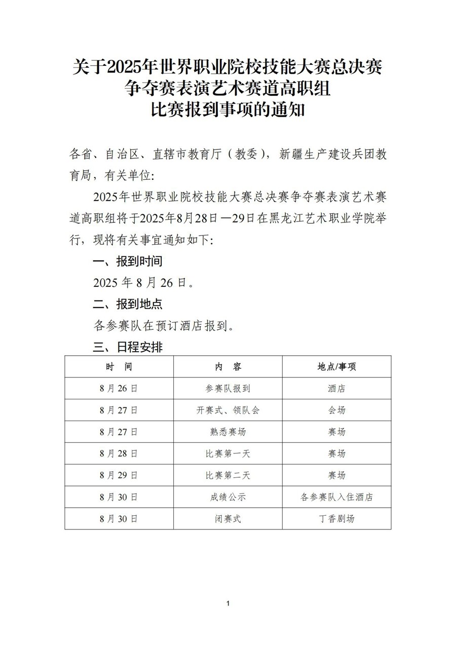 关于2025年世界职业院校技能大赛总决赛争夺赛表演艺术赛道高职组比赛报到事项的通知