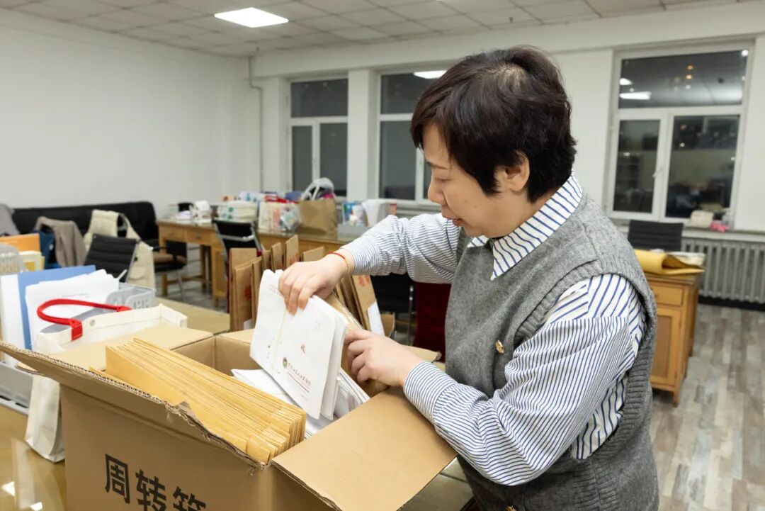 工作人员对考试用品进行整理