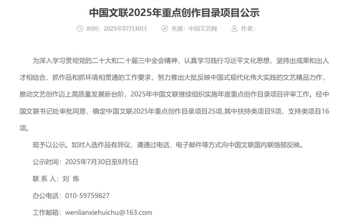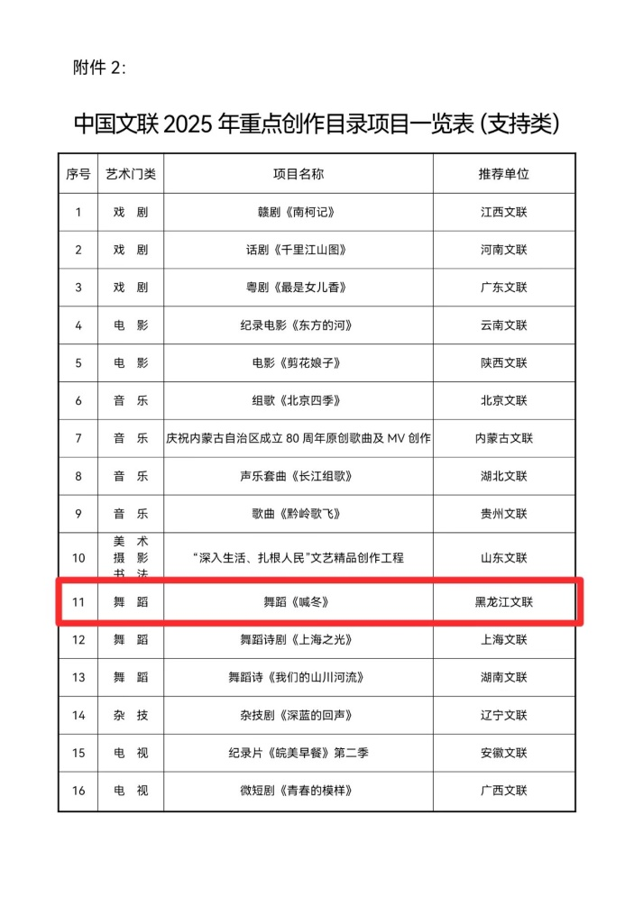 近日,中国文联2025年重点创作目录项目进行公示,共有25个项目入选,扶持类项目9个,支持类项目16个。其中,扶持类项目中舞蹈类作品入选1个,支持类项目中舞蹈类作品入选3个。